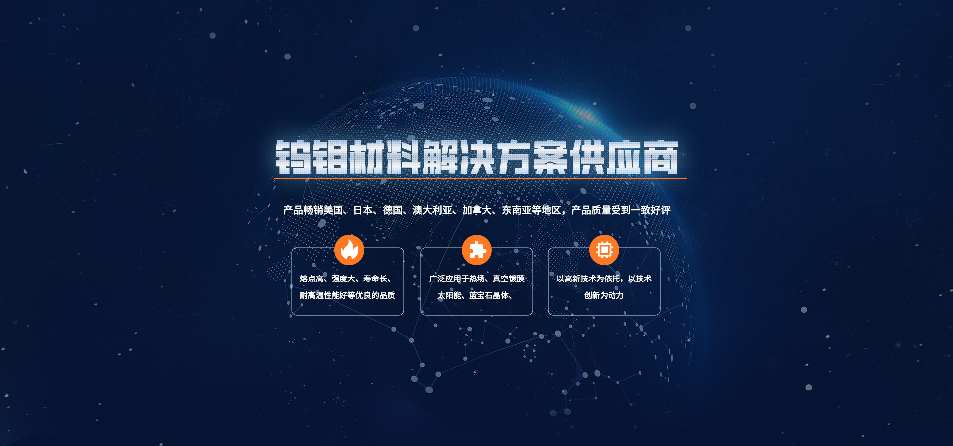 洛陽科神鎢鉬科技有限公司成立于貳零壹柒年陸月,位于洛陽市洛新產(chǎn)業(yè)集聚區(qū)東大科技產(chǎn)業(yè)園W2-4號,現(xiàn)已發(fā)展成為行業(yè)領***先的鎢鉬材料解決方案供應商。本公司下屬的洛陽聚晶鎢鉬科技有限公司東大鎢鉬加工廠是專**業(yè)生產(chǎn)鎢鉬及其合金制品的專**業(yè)制造工廠。所生產(chǎn)的產(chǎn)品以其熔點高、強度大、壽命長、耐高溫性能好等優(yōu)良的品質(zhì)深受國內(nèi)外用戶青睞。本公司生產(chǎn)的“聚晶”牌鎢鉬制品廣泛應用于熱場、真空鍍膜、太陽能、藍寶石晶體、光電子、半導體、特種陶瓷、光源照明、機械部件、玻璃制造、玻璃纖維,耐火纖維,稀土冶金、工業(yè)窯爐等諸多領域。其中,鉬板電極、鉬螺栓、鉬彎條專**業(yè)用于玻璃纖維爐用加熱電極材料;鎢合金棒電極、鉬棒電極、鉬流口、鎢(鉬)板、鎢(鉬)捅針專**業(yè)用于硅酸鋁纖維爐、玻璃電熔窯爐用加熱電極材料;鉬基鎢靶專**業(yè)用于CTX射線管和旋轉(zhuǎn)陽極X射線管;鎢棒、(鎢)鉬坩堝專**業(yè)用于稀土冶金行業(yè);銅鎢合金、碳化鎢銅專**業(yè)用于中、高壓開關管電觸頭材料;鎢(鉬)坩堝、鎢(鉬)隔熱屏、鎢(鉬)部件專**業(yè)用于真空爐、藍寶石晶體生長爐加熱室;本公司所生產(chǎn)的“聚晶”牌鎢鉬制品以其技術含量高、耐高溫性能好、電性能優(yōu)良、壽命長等特點,被越來越多的國內(nèi)外企事業(yè)單位,研究機構(gòu)所采用。產(chǎn)品暢銷美國、日本、德國、澳大利亞、加拿大、東南亞等地區(qū),產(chǎn)品質(zhì)量受到一致好評。本企業(yè)已通過ISO9001:2008質(zhì)量管理體系認證,真正以高新**技術為依托,以技術創(chuàng)新為動力,以質(zhì)量過硬為宗旨,以誠實守信為信條。竭誠為國內(nèi)外新老客戶提供優(yōu)**質(zhì)的產(chǎn)品、良好的服務。我們熱忱歡迎您的惠顧,歡迎您的合作! 服務理念:誠信溝通零**距離,恭謙服務無極**限。經(jīng)營理念:以人才和技術為基礎,創(chuàng)造出*高品質(zhì)的產(chǎn)品和服務,為人類社會的發(fā)展做出貢獻。品質(zhì)保證:材料,確保*高的性能。我們的傳統(tǒng):創(chuàng)新。創(chuàng)造的技術,新的視角。